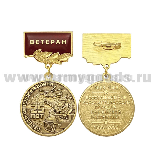 Медаль Первая чеченская война 25 лет (Восстановление конституционного порядка в чеченской республике) (на планке - Ветеран, смола)