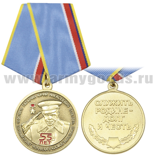 Медаль Гагарин Ю.А. 55 лет со дня первого полета человека в космос (Служить Родине - Долг и Честь)