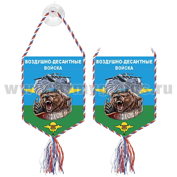 Главная-23 ШЕЛКОГРАФИЯ (шевроны и вымпелы)-Вымпел шелкография автомоб. на присоске ВДВ (Никто, кроме нас) (медведь)