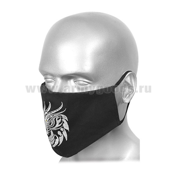 Маска тканевая двухслойная с вышивкой Дракон (черная)