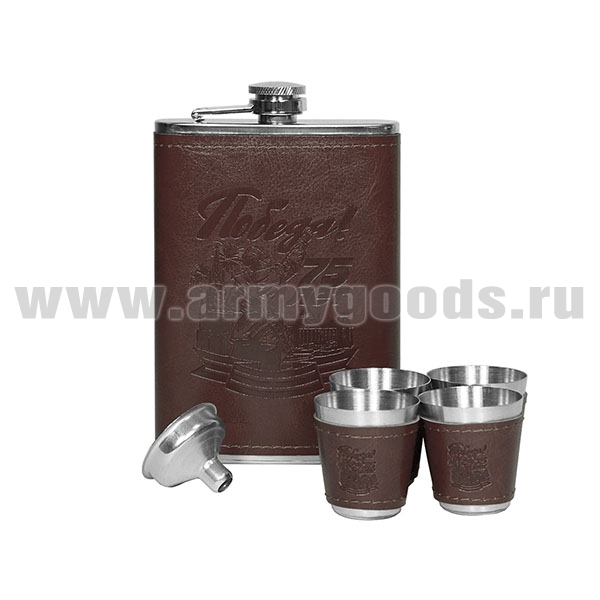 Набор подарочный Победа! 75 лет (фляга нерж. сталь + 4 стопки; тиснение на коже)