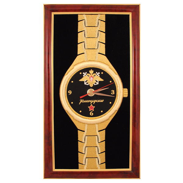 Часы подарочные вышитые на бархате в багетной рамке 25х45 см (Командирские ВМФ)