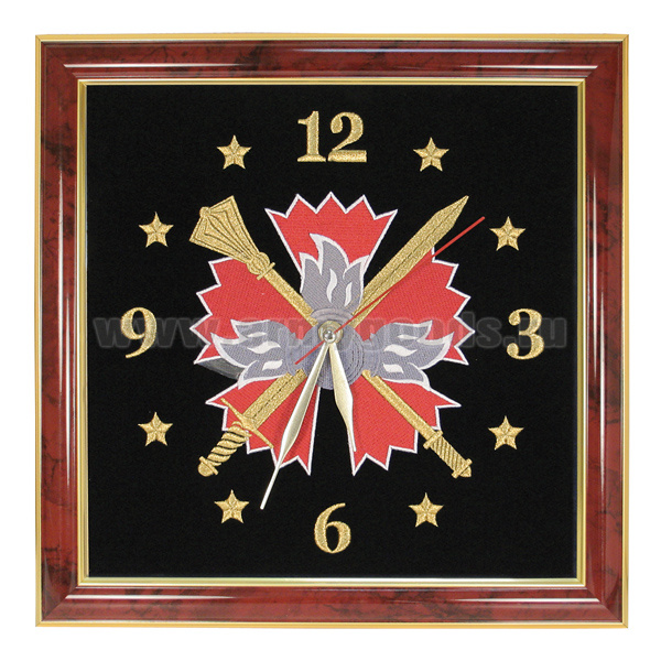 Часы подарочные вышитые на бархате в багетной рамке 35х35 см (ГРУ)