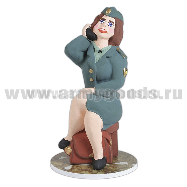 Главная-28 СУВЕНИРЫ, ПОДАРКИ-2812 ФИГУРКИ ГИПСОВЫЕ И КОМПОЗИТНЫЕ-Фигурка гипсовая Девушка - сотр. Таможни с моб. тел. (на подставке, в цилиндрич. упаковке)