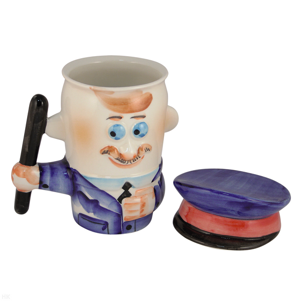Главная-28 СУВЕНИРЫ, ПОДАРКИ-2818 КРУЖКИ ФАРФОРОВЫЕ С КРЫШКОЙ-Кружка фарф. (0,5 л) с крышкой Милиционер