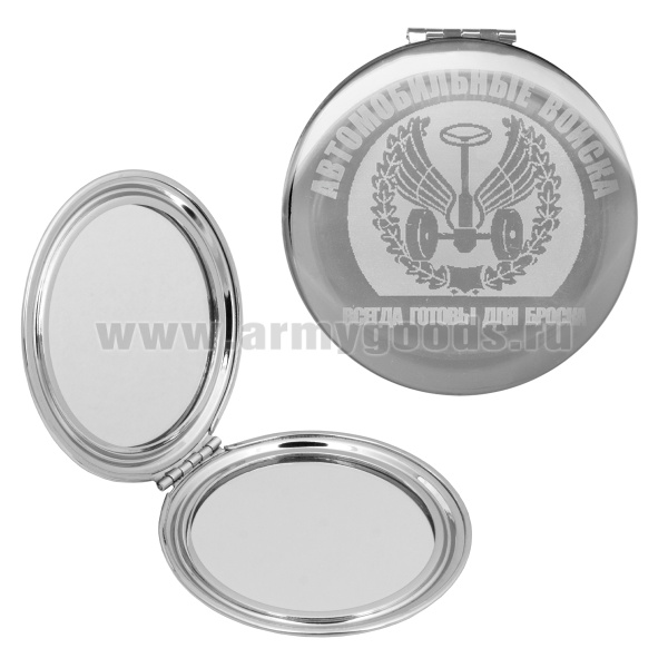Зеркало карманное с лазерной гравировкой Автомобильные войска (Всегда готовы для броска)