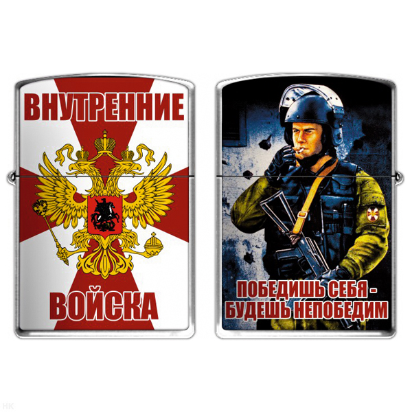 Зажигалка бензиновая цветная Внутренние войска (Победишь себя - будешь непобедим)