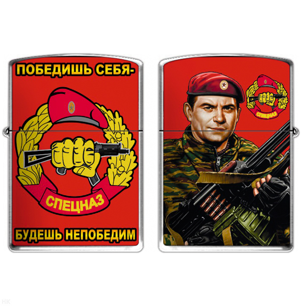 Главная-28 СУВЕНИРЫ, ПОДАРКИ-2842 ЗАЖИГАЛКИ БЕНЗИНОВЫЕ ЦВЕТНЫЕ-Зажигалка бензиновая цветная Спецназ (Победишь себя - будешь непобедим)