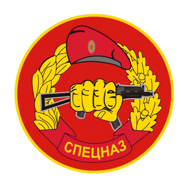 Наклейка круглая (d=10 см) Спецназ (кулак с автоматом в венке)
