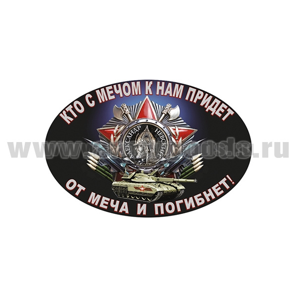 Наклейка овальная Кто с мечом к нам придет, от меча и погибнет (А.Невский) (15x10 см)