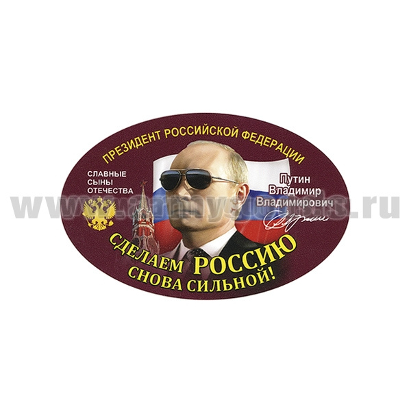 Наклейка овальная Сделаем Россию снова сильной! (Путин В.В.) (15x10 см)