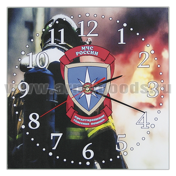 Часы настенные стеклянные МЧС России (Предотвращение спасение помощь) (28x28 см)