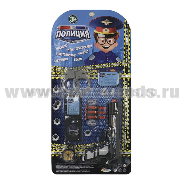 Набор полицейского (пистолет, присоски, наручники, удостоверение, бейдж, компас)