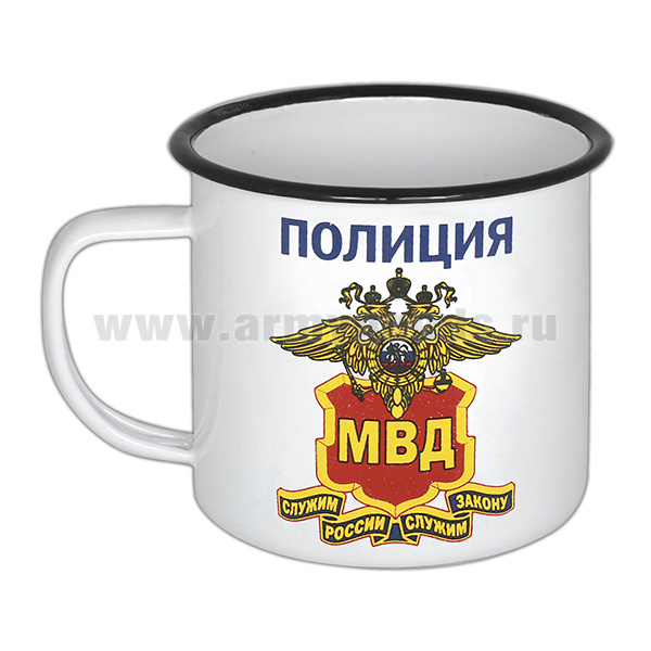 Кружка эмалированная 0,5 л с рис. (деколь) Полиция МВД Служим России, служим закону