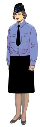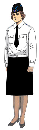 Шляпа женская. Изготавливается из фетра или сходного с ним материала, цвет черный. Состоит из круглого колпака и полей. Внизу колпака крепится муаровая лента синего цвета шириной 5-6 см. Спереди посередине на шляпу крепится совмещенная кокарда.