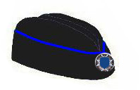 Пилотка армейского образца, но с перехлестывающимся на левую сторону кантом синего цвета по бортику. На пилотке спереди прикрепляется совмещенная кокарда.