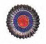 Кокарда представляет собой выпуклую серебристую розетку круглой формы с гофрированной поверхностью и зубчатами краями, с двумя концентрическими кругами, среднего – синего цвета и внутреннего – красного цвета.