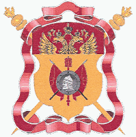 В пурпурном поле, под червленой главой, - золотая зубчатая стена, мурованная черным, с двумя такими же башнями и открытыми между ними воротами. Между башен, из-за стены, выходят золотой пернач и - по сторонам от него - два серебряных бунчука на золотых древках с золотыми навершиями в виде копья над полумесяцем рогами вверх. В главе - возникающий золотой двуглавый орел - главная фигура Государственного герба Российской Федерации. За щитом - лазоревый штандарт с навершием в виде золотого двуглавого орла, на золотом древке с золотым же подтоком, с золотой бахромой и кистями. На полотнище - в золотом лавровом венке - вензель императора Александра II. По сторонам, за щитом, в косой крест положены четыре лазоревых знамени с золотыми навершиями в виде копья, на золотых древках с золотыми же подтоками, с золотой бахромой и кистями. На полотнищах - в золотых лаврово-дубовых венках - вензели императрицы Екатерины II, императоров Павла I, Александра I и Николая I. Древки штандарта и знамен перевиты червленой, с узкой серебряной каймой, лентой.