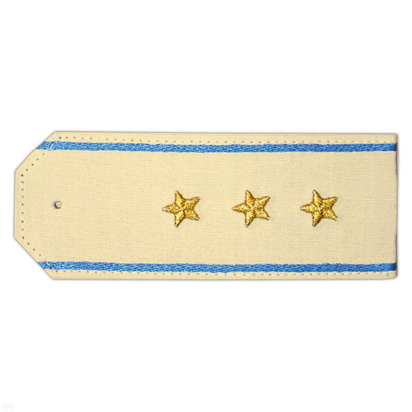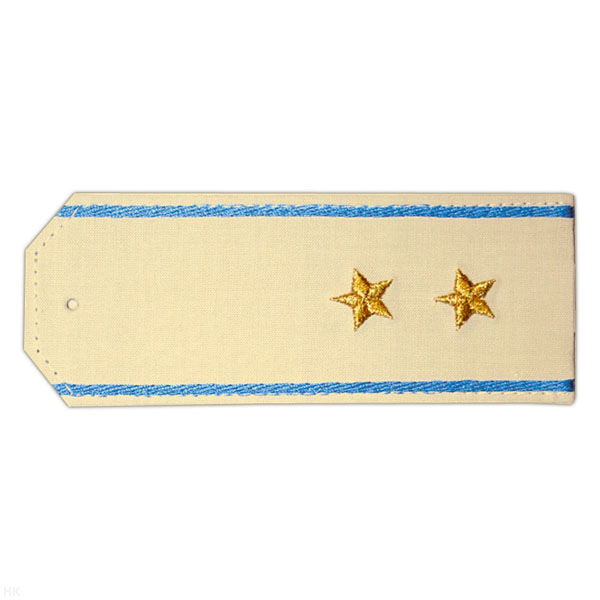 Погоны «машинная вышивка» из рубаш. ткани крем. с вышит. голуб. кантом с вышит. звездами (прапорщик)