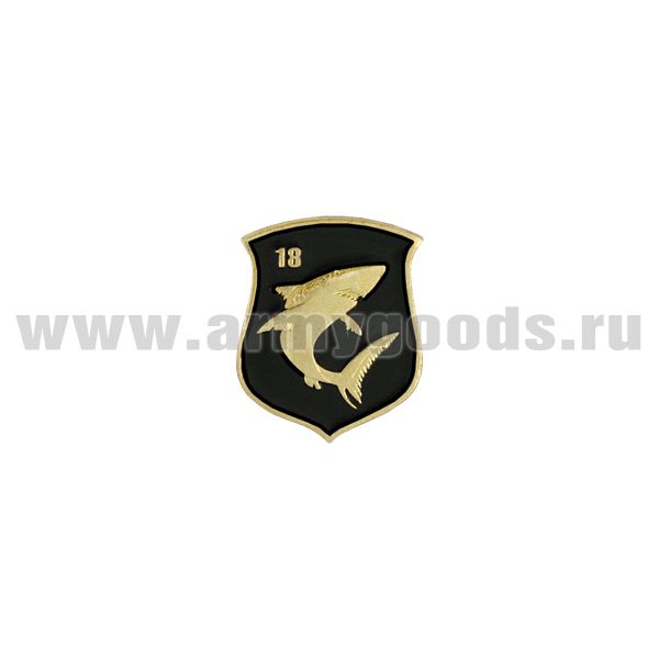 Значок мет. 18 ДИПЛ КСФ (эмблема на черном щите дивизии) мал, на пимсе