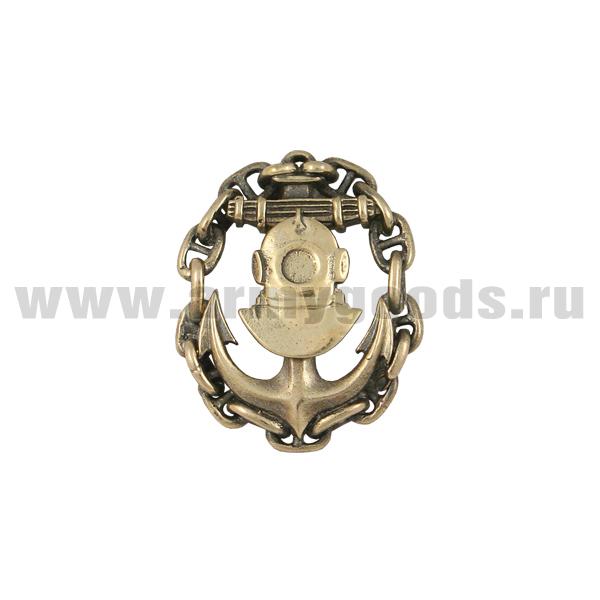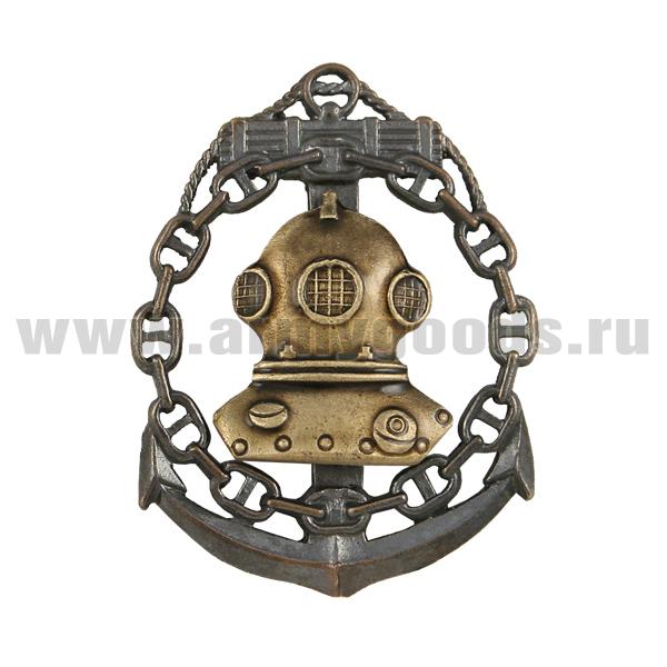 Значок мет. Водолаз на якоре, в цепи (вполоборота)