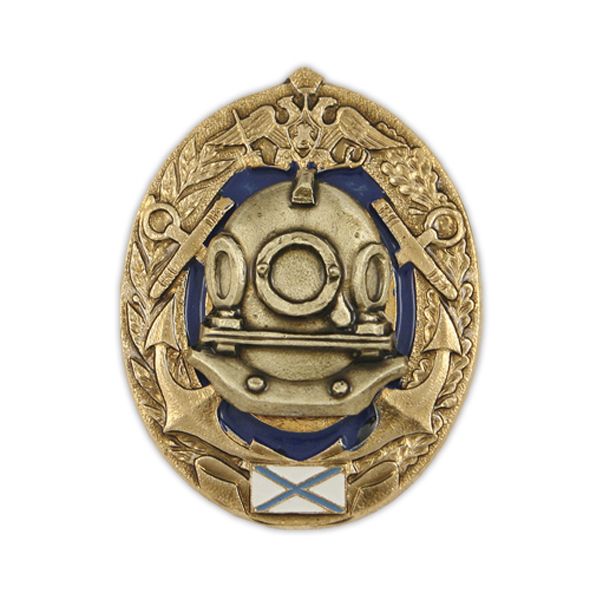 Значок мет. Водолаз на 2 якорях в овале с орлом РА и андреевским флагом