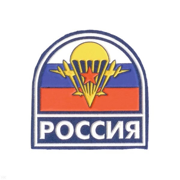 Шеврон пластизолевый Россия (арка МС триколор с эмблемой ВДВ) голубой