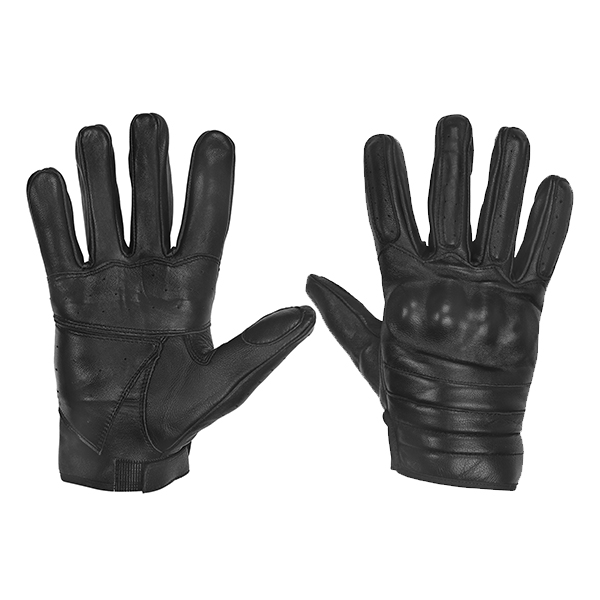 Перчатки кожаные с защитными накладками черные (застежка на кнопке)