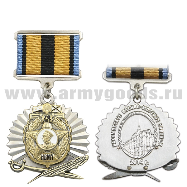 Медаль 70 лет НВМУ (2 накладки) на прямоуг. планке лента