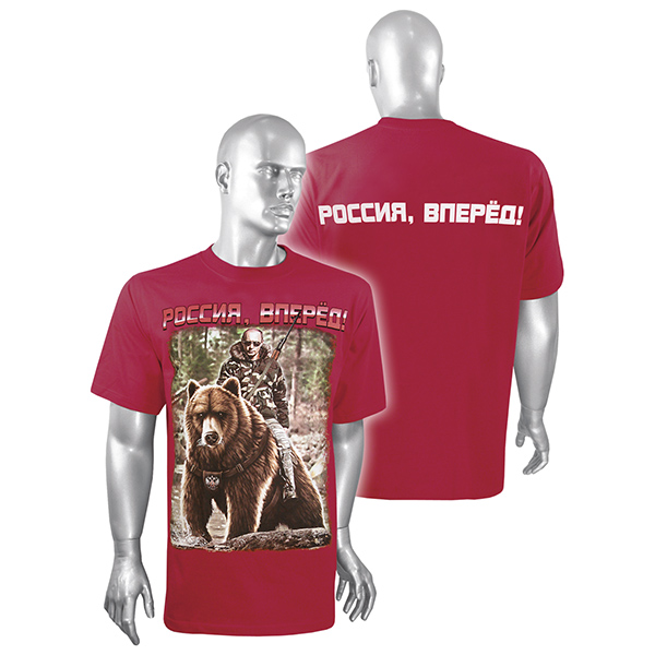Футболка с рис краской Россия, Вперед! (Путин на медведе) красная