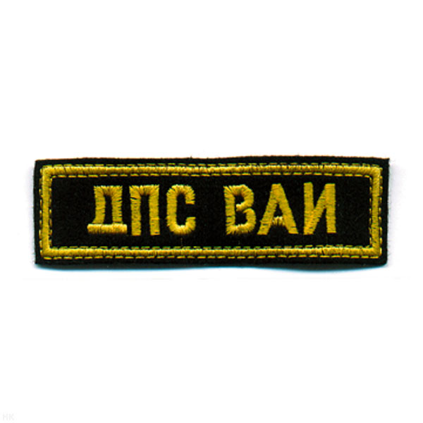 Нашивка на грудь вышит. Вооруженные силы России (125x25 мм) васильковый фон, желтый кант (на липучке)