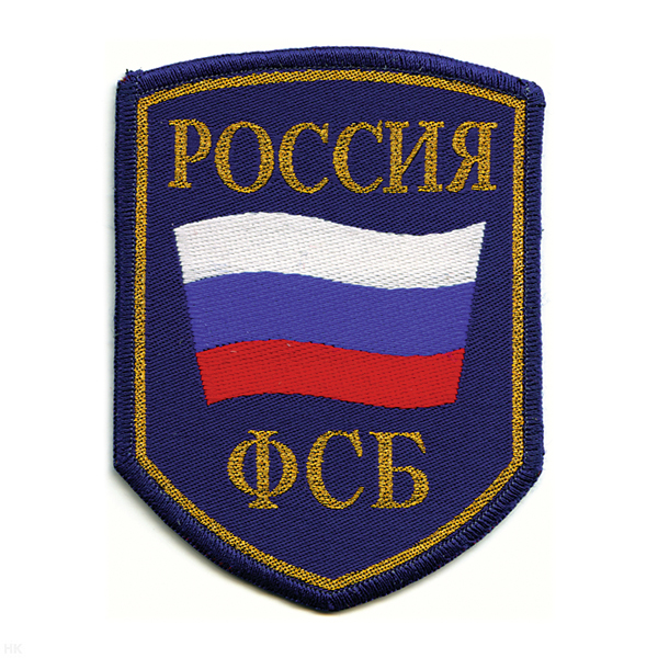 Шеврон тканый Россия ФСБ (5-уг. с флагом) васильк.