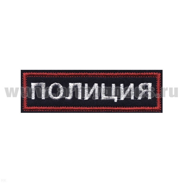Нашивка на грудь вышит. Полиция (иссиня-черный фон ,красный кант, белые буквы) люрекс