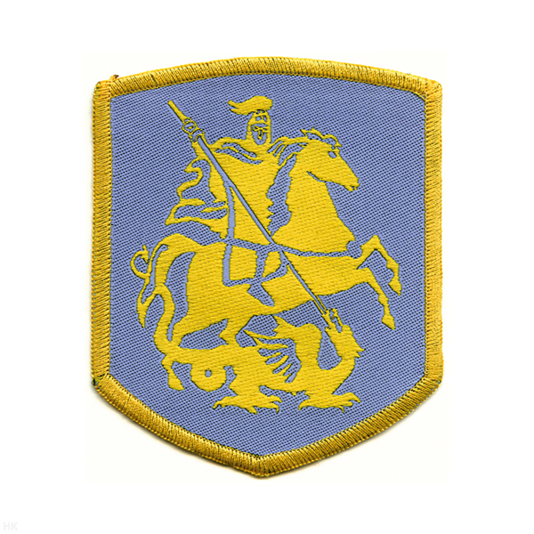 Шеврон тканый Георгий Победоносец (5-уг. на серо-голуб. тк.)
