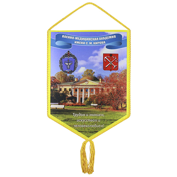 Вымпел шелкография Военно-медицинская академия имени С. М. Кирова (Трудом и знанием, искусством и человеколюбием!)