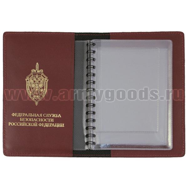 Обложка кожаная под автодокументы с тиснением ФСБ красная