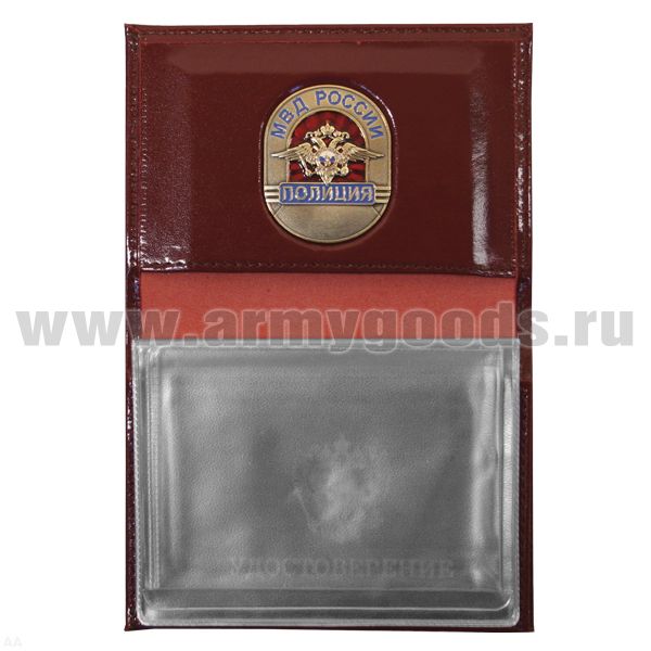 Обложка-книжка кожаная под автодокументы со значком Полиция (овальный)
