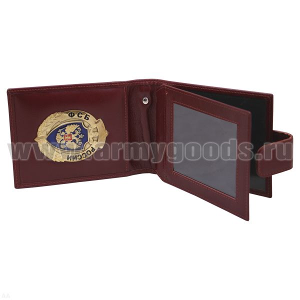 Обложка кожаная под удост. со значком ФСБ РФ (щит и меч с накладным орлом)