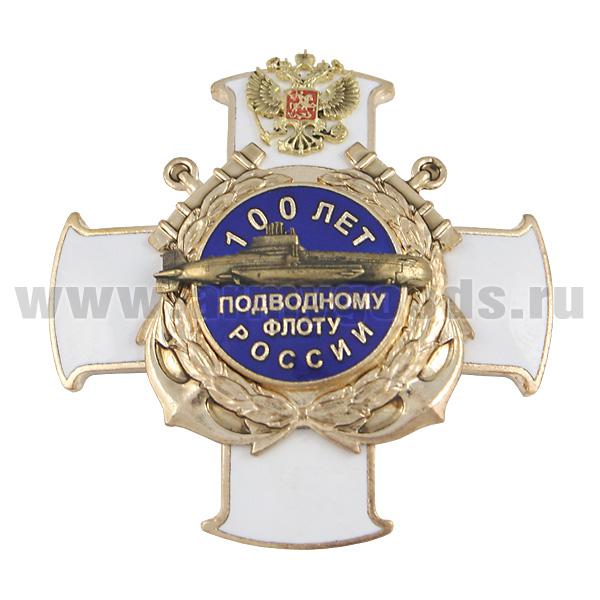 Значок мет. 100 лет подводному флоту России (белый крест) гор. эм.