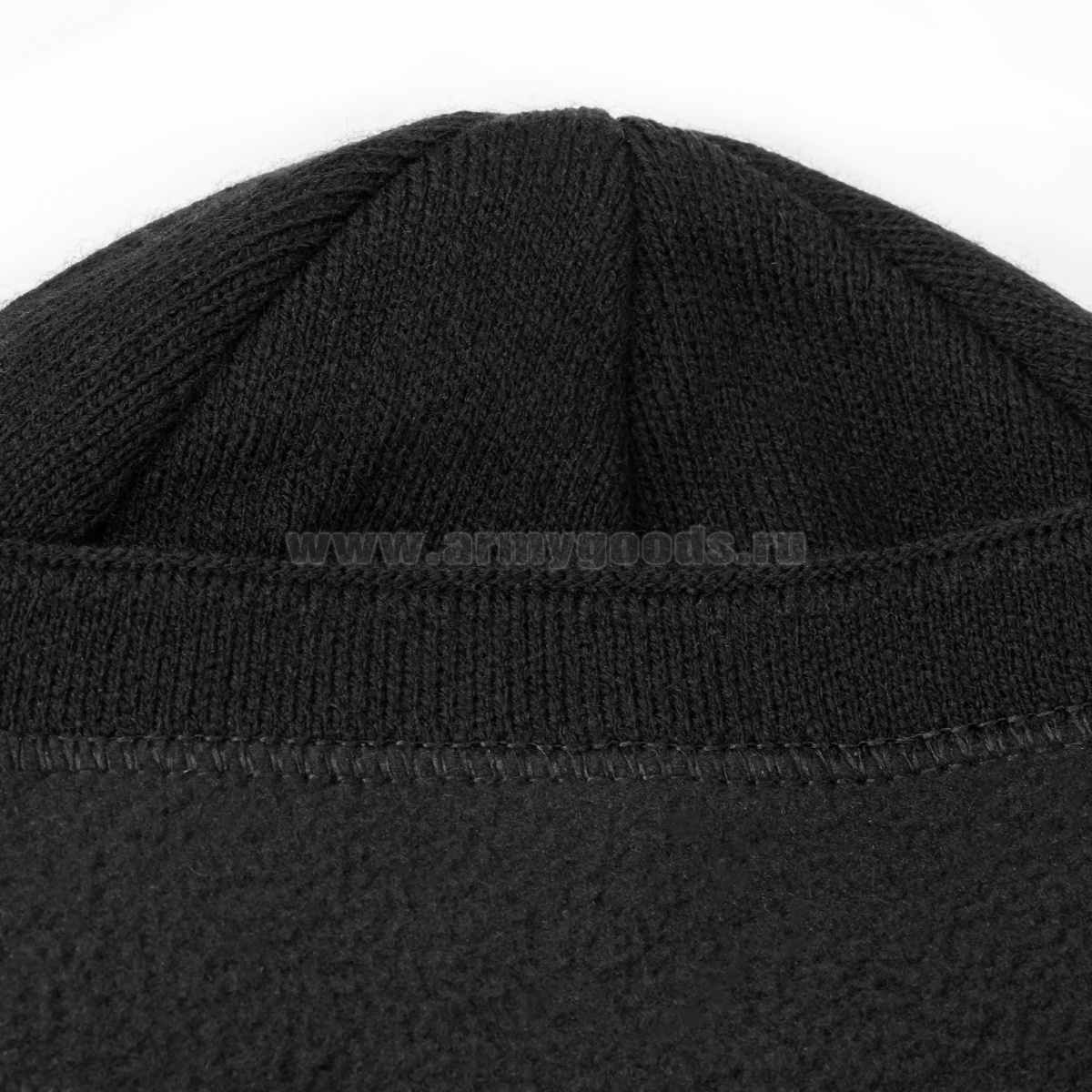 Шапка вязаная п/ш с флисовой подкладкой черная с вышит. шевроном Росгвардия (орел РГ)