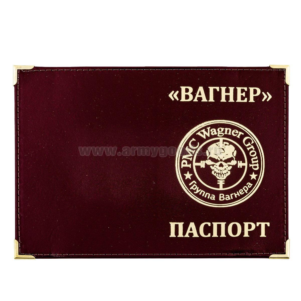 Обложка кожа Паспорт Вагнер (с эмбл. ЧВК "Вагнер") с мет. уголками