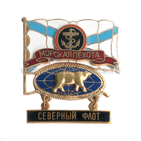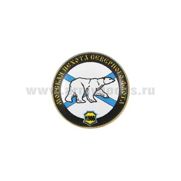 Значок мет. МП Северного флота 1966 Белый медведь (мал., круглый, смола, на пимсе)