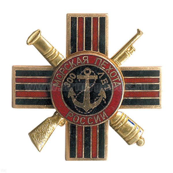 Значок мет. Крест Морская пехота России 300 лет, гор. эм.