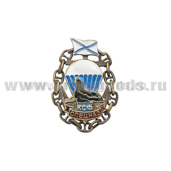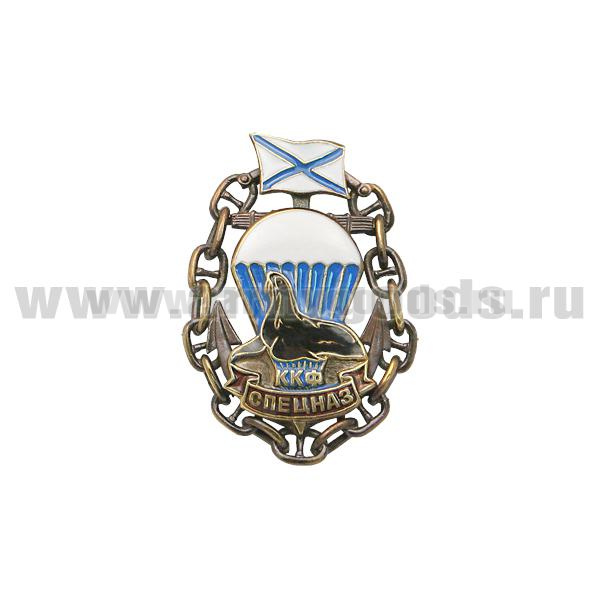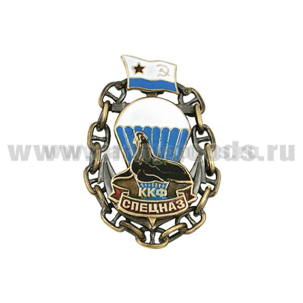 Значок мет. Спецназ ККФ (морской котик в цепи) литье, хол. эм. (флаг ВМФ СССР)