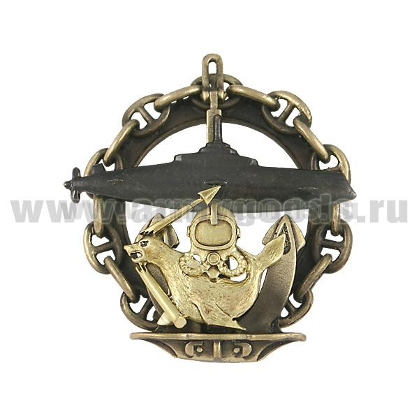 Значок мет. ПЛ с водолазом и морским котиком на якоре, в цепи
