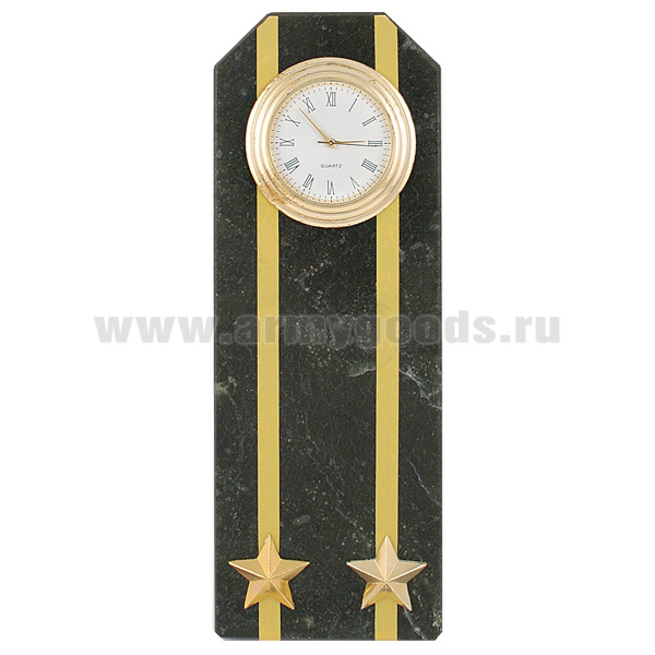 Часы сувенирные настольные (камень змеевик черный) Погон Подполковник ВМФ