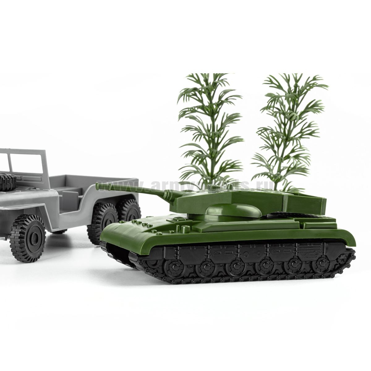 Набор игрушек пластмассовых "Бронегруппа" (машина 1 шт, танк 1 шт, кусты 2 шт) 12043