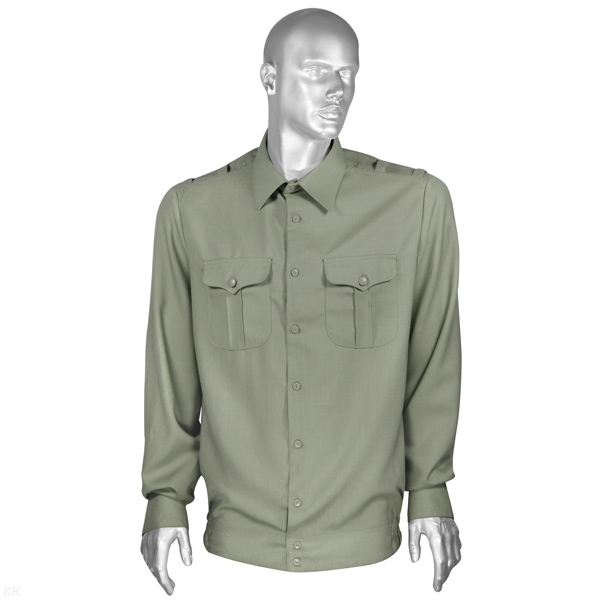 Главная-01 ОДЕЖДА-0119 РУБАШКИ МУЖСКИЕ-Рубашка форм. генеральская (дл.рук.) оливковая (шерсть 45%, п/э 55%) р-ры с 37 по 46