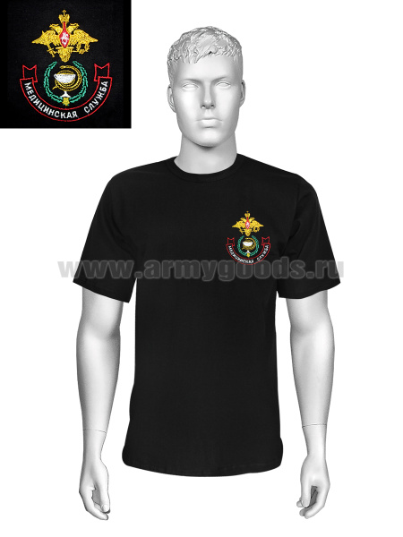 Футболка с вышивкой на груди Медицинская служба, черн.