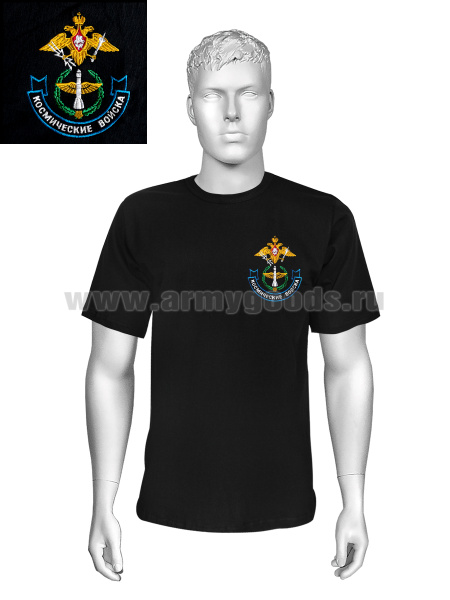 Футболка с вышивкой на груди Космические войска (орел и ракета) черн.